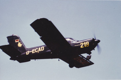Die Zeit meiner weiterführenden Berufsausbildung vom 01.04.1971 bis 1974 in Berlin sowie die nachfolgenden Jahre bis Anfang der 80‘iger war eher Discozeit, Bands und damit Möglichkeiten zum Spielen waren weniger angesagt. Ich wandte mich einem anderen Hobby zu, nicht ahnend, dass ich durch diese neue Aktivität letztlich doch wieder zur Musik kommen würde. Im Herbst 1982 begann ich mit der Ausbildung zum Privatpiloten, am 10.5.1984 war ich stolzer Besitzer eines Luftfahrerscheins für Privatluftfahrzeugführer (wir würden Pilotenschein sagen, aber so heißt das nun mal im Amtsdeutsch). Und ein eigenes Flugzeug musste ja auch her, zufällig in der Farbe „Musikerschwarz“.