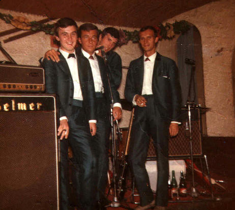 Am 1.April 1964 bekamen wir ein tolles Angebot. Wir konnten 6 Monate in Villach am Wörthersee als Vollprofis arbeiten. Alle waren aus dem Häuschen! Die Gage haute uns fast um - 2000 DM pro Mann, Logie + Essen gratis!!! Wir verliessen Wien und waren nunmehr Musiker. Hatten ganz viel Zeit und Lust um zu lernen. Da wir täglich von 21.00h bis 03.30h spielten, lernten wir auch viele Veranstalter kennen. So ergaben sich im Anschluss etliche neue Jobs. Österreich - Italien - Schweiz und dann Deutschland. Wir spielten in fast ganz Bayern, bis wir im November 1967 in Stuttgart auftraten. Die Luft war nach so langer Zeit etwas raus und so kam es, dass ich Karin aus Oldenburg kennen lernte. Sie wollte wieder zurück und wir beschlossen, eine Familie in Oldenburg zu gründen. Die einzige Bedingung von ihrer Seite: Keine Musik mehr, sondern "normale" Arbeit...