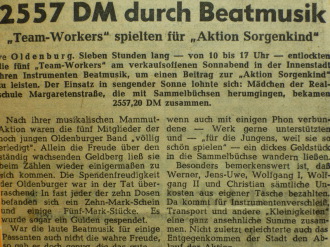 Sommer 1971 spielen für wir eine gute Sache am Lefferseck, wofür wir Berufstätigen gern einen Urlaubstag opfern. Die NWZ bringt dazu am Folgetag diesen netten Artikel mit Bild: