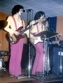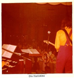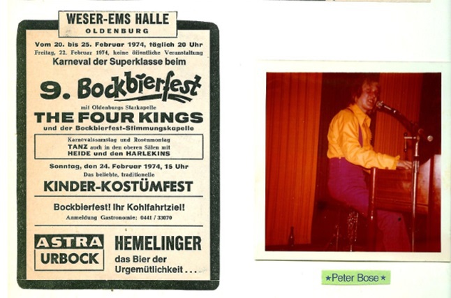Dieser alte Kasten, der von meinen Eltern argwöhnisch registriert wird, ist dann bei meinem ersten öffentlichen Auftritt am 11.04.1971 in Wöbkens Gasthaus in Achternholt ".. mit Tanz auch für die mittlere Generation .." dabei. Ich erinnere mich gut an meine Nervosität, an des Sängers theatralische Gesten bei den Peter Maffay-Schnulzen und ähnlichen "Schlüpferstürmern" sowie an die Milchflaschen auf der Bühne, die das Bild eines unschuldigen Kindergeburtstags vermitteln. Mein musikalischer Beitrag als Begleitgitarrist ohne Gesang ist dabei bescheiden. Trotzdem bin ich ab jetzt infiziert.