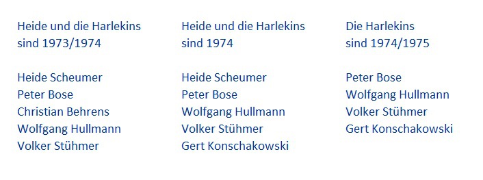 Frank Pape (Gesang, Gitarre), Robert ... (Baßgitarre und Saxophon), einer der drei Heinze-Brothers (Gitarre und Orgel), sowie Fritz Eggemann an den Drums. Nanu, den kenne ich doch noch von einem recht mutlosen Auftrtt einer Gemeinschaft, die sich "German Airforce" nannte, in der OT an der Gartenstrasse, u.a. mit den Kameraden "Helli" Reck und Hartmut Hühn - bevor der sich zu den "Lovelights" absetzen konnte. Aber hier im Christopher wirft sich der "kräftige" Fritz" in's Schlagzeug und bearbeitet bei dem Sweet-Titel "Poppa Joe" die Trommelfelle und ein kurios wirkendes Mini-Becken, daß ich aus dem Staunen nicht rauskomme.