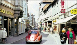 1960: Oldenburg - eigentlich lieber ohne mich. Die Familie hat ihr Quartier in der Moltkestraße 11 bezogen - direkt neben der Prunkvilla, in der die EWE Büros unterhält. Nur 80m Luftlinie von Oldenburgs 'englischem Garten' "entfernt" - durch den nach meinem Eindruck zumeist alte Damen solo im schwarzen Nerz und toupierten Frisuren auf den sorgsam gepflegten Sandwegen wandeln - ist das hier ein Kurort für Beamtenwitwen? Ein bißchen Spaßfaktor gibt es - wenn auch nicht mehr lange. Die Stadt opfert den Spielplatz zwischen Pinkelwinkel bei der Reinigung und dem Sozialgericht im 'Herzogin Anna Palais' für eine Durchgangsstraße. Diese Marginale rettet Oldenburg allerdings vor einem zu erwartenden Verkehrskollaps. Ich bestaune das Ampel-Ensemble, welches auf unglaubliche Weise einen funktionierenden Verkehrsfluss vom Theaterwall zum Damm und zum Stautorkreisel herstellt.