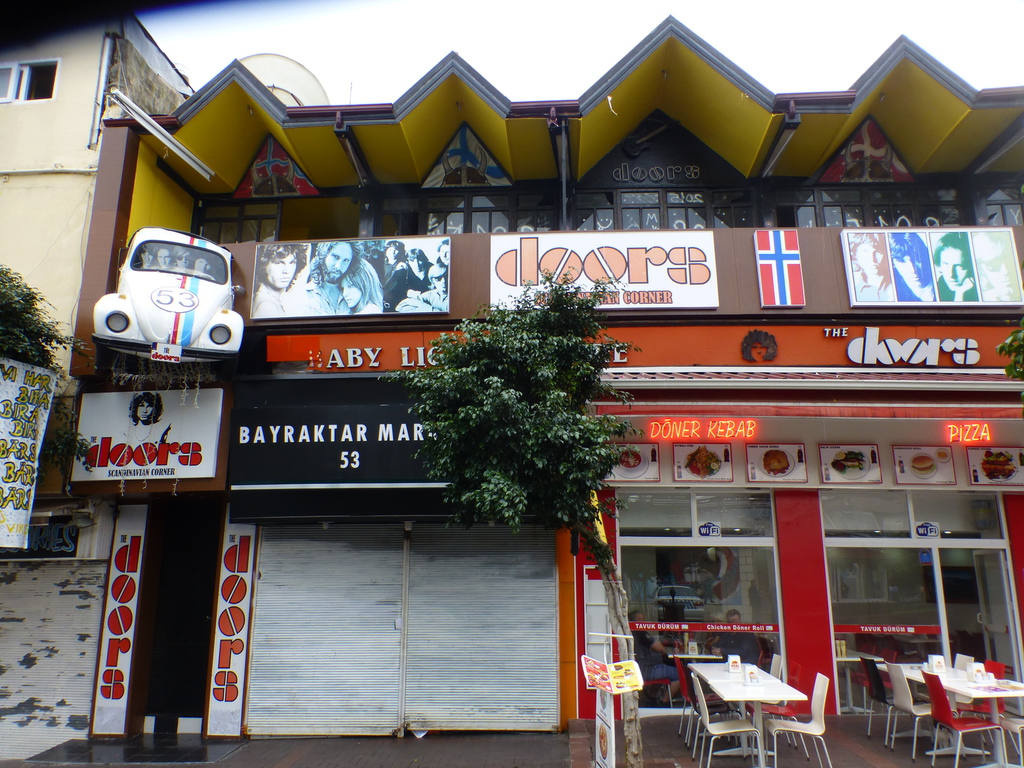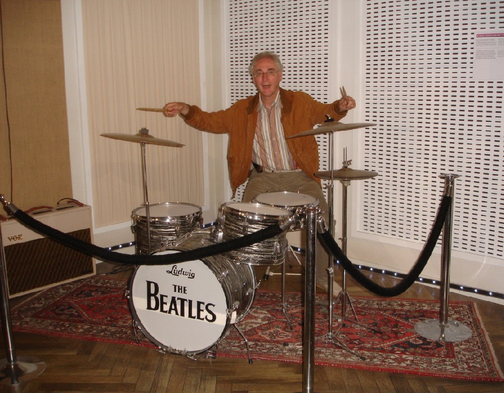 Nebenbei: Bei unseren Besuchen fällt mir ein einsames schwärzliches Schlagzeug mit der Aufschrift "The Teamworkers" auf der Bass-Drum ins Auge.