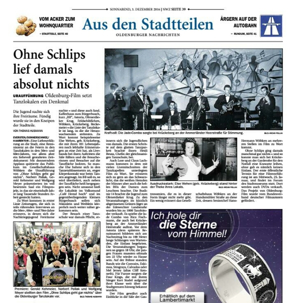 Dafür liegt Oldenburg als norddeutsche Stadt näher an Hamburg. Und so einige aufgeweckte Oldenburger Jungs haben da ein Ohr hin. Die sind schon ganz früh inspiriert von dem was den Hamburger Clubs 'Kaiserkeller', dem 'Top Ten' und dem 'Starclub' und weiteren Lokalitäten passiert.