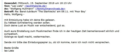Ich kriegte von Deutschlands Beat-Ikone diese eMail: