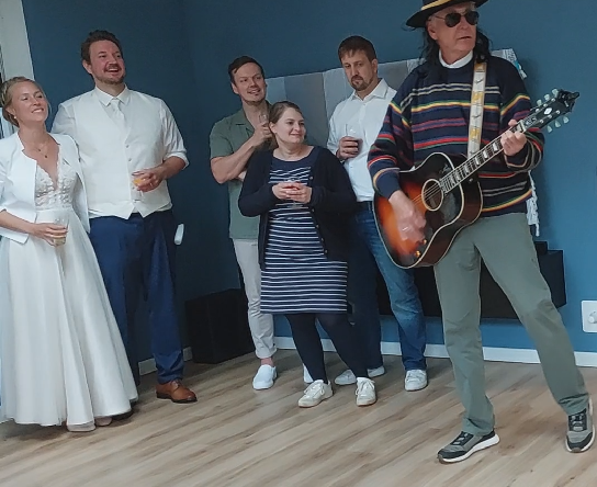 Wir sind so intensiv dabei, daß ich mich sogar bei der Hochzeitsfeier meines Bruders für eine Probe von Roadie Sven von der Feier in einem Everstener Lokal zur Garage und wieder zurückbringen lasse.