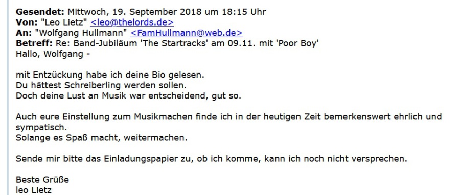 ... Da Stücke der "The Lords" fester Bestandtieil unseres Programm sind, habe ich zu unserem Jubiläum Bandleader, Gitarrist und Komponist Peter "Leo" Lietz eingeladen.